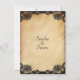 Romantic look of black lace on a rustic area. Put the first names of the Bride and Groom on one side giving your invitations a less formal feel. On the other side the pertinent wedding information adds a classic flair.
