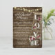 Vintage wood ladder with LOVE letters and burgundy rose bouquets decorate this country rustic bridal shower invitation. Sparkly twinkle string lights add extra charm over the dark barn wood background.