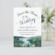 This wedding Save the Date card is designed for a destination wedding at Lake Tahoe. The design is rustic and outdoorsy yet elegant and beautiful. It features a watercolor landscape of the lake surrounded by pine trees and mountains. The back is a deep marbled forest green color. Perfect way to let your friends and family know about your upcoming wedding.