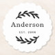 Rustic Laurel Branch Wreath Last Name Monogram Paper Coaster