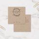 Simple rustic jewellery display card featuring laurel leaf, script calligraphy "handmade", modern typography.