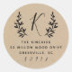 Custom return address sticker label personalised with your family monogram and address featuring hand drawn laurel branches with berry accents and modern calligraphy script on a rustic Kraft background.