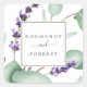 These rustic lavender and eucalyptus envelope seals are perfect for a simple and elegant outdoor wedding. The floral design features watercolor eucalyptus leaves and greenery with sprigs of purple wildflowers. Personalise the label with the names of the bride and groom.