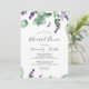 This rustic lavender and eucalyptus rehearsal dinner invitation is perfect for a simple and elegant outdoor wedding rehearsal. The floral design features watercolor eucalyptus leaves and greenery with sprigs of purple wildflowers.
