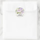 Pretty bridal shower favour seal featuring a watercolor purple lavender floral bouquet set on a rustic wood background.