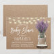 Rustic Lavender Mason Jar & String Lights Kraft Baby Shower Invitations.