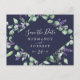 This rustic lavender navy blue save the date postcard is perfect for a simple and elegant outdoor wedding. The floral design features watercolor eucalyptus leaves and greenery with sprigs of purple wildflowers on a dark blue background.