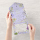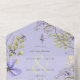 ALSO AVAILABLE WITH A QR CODE TO SCAN OR WITH DINNER SELECTION OPTIONS. This design features lavender, pale blue, and white wildflowers with delicate greenery on a lavender background. Personalised All-In-One invitations are a unique combination of both a beautifully printed custom invitation with an easy to tear off perforated RSVP postcard. And they are so easy to use! You simply fold, then seal the back flap with the three included clear stickers, and mail. And when your guests receive your custom invite, they just tear the perforated RSVP Card off and drop it back in the mail to you!