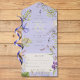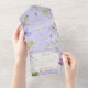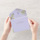 ALSO AVAILABLE WITH A QR CODE TO SCAN OR WITH DINNER SELECTION OPTIONS. This design features lavender, pale blue, and white wildflowers with delicate greenery on a lavender background. Personalised All-In-One invitations are a unique combination of both a beautifully printed custom invitation with an easy to tear off perforated RSVP postcard. And they are so easy to use! You simply fold, then seal the back flap with the three included clear stickers, and mail. And when your guests receive your custom invite, they just tear the perforated RSVP Card off and drop it back in the mail to you!