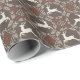 For a rustic look at Christmas, this wrapping paper features a repeating pattern of leaping deer in grey with red and off-white accents. Add red ribbon as a beautiful accent.