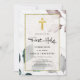 Rustic Leaves Gold Glitter Cross First Communion Invitation