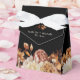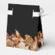 Rustic Leaves Wedding Favour Box. This elegant fall wedding favour box features hand-painted watercolor burnt orange and terracotta leaves, cream and beige dahlias, and beautiful rust-coloured roses on a black background with the bride and groom's name and wedding date in cream text. Find matching items in the Black Autumn Romance Collection.