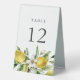 A lovely choice for weddings with a Mediterranean theme, this tent style table number sign features beautiful watercolor bouquet of lemons with flowering blossoms and leafy greenery. It adds a bit of colour to your table decor at weddings, banquets, receptions and other events. These table number tent signs are printed individually with the number shown on both sides of the sign. In order to have a sign numbered for each table, personalise the table number in the text template and add to cart. Then personalise another table number sign with the next table number and add to cart. Repeat this process until you have a separate tent sign for each table number. Once you have them all created, you can continue with check out to place your order.