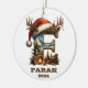 Embrace the warmth of the holiday season with this unique letter "F" ornament, featuring a rustic design that captures the beauty of the great outdoors. This festive piece is adorned with a classic Santa hat, reindeer antlers, and delightful holiday accents, creating a cosy, nature-inspired look. Inside the letter "F," a charming winter scene with a cabin, snow-covered mountains, and evergreen trees brings a touch of woodland charm to your decor. There’s a personalizable space below the letter for adding a name and year, making this ornament a wonderful keepsake for friends and family who love rustic holiday decor.