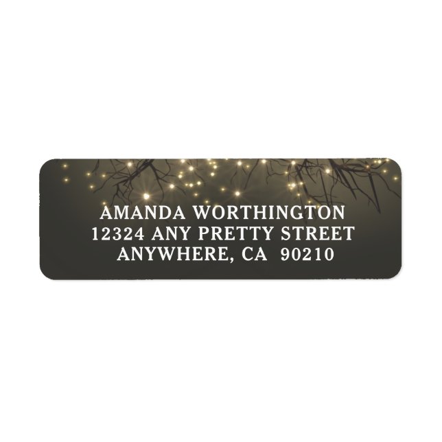 Rustic Lighted Tree Branch Country Wedding Address Labels -- feature lighted string lights over a night sky background dangling from a tree branch. See the full matching collection in this design on this page.