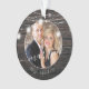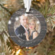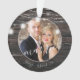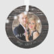 First Christmas married ornament keepsake. Holiday marriage keepsakes and Christmas married announcement gifts. Rustic brown wood with string twinkle mason jar lights. The word married in pretty calligraphy script. Easy templates to add your favourite couple photo, bride and groom's names and date. Created by © Lesruba Weddings.