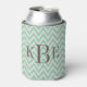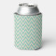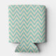 Rustic Linen Beige and Aqua Chevron Monogram Can Cooler