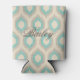Rustic Linen Beige and Aqua Ikat Monogram Can Cooler