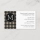 Rustic Linen Black Buffalo Plaid gingham Monogram Business Card