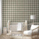 Rustic Linen Buffalo Check Beige and Green Plaid Wallpaper