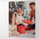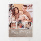 Rustic Linen & Happy Holidays Script Multiphoto Tri-Fold Card