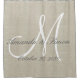 Rustic Linen Look and White Monogram Wedding Shower Curtain