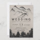 Rustic linen watercolor forest mountains wedding invitation
