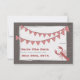 A rustic beach wedding save the date featuring an illustration on front of red gingham bunting and an illustration of a lobster over a barnwood background.