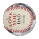 Rustic Love You Dad Father`s Day 2 Photo Collage Baseball. This modern custom and personalised baseball is a perfect gift for a dad or a new dad on Father`s Day. I love you dad 2 photo template baseball. Personalise it with 2 photos, name and year number. The background is rustic beige texture and the text is a trendy black and red typography. You can change any text on the baseball or erase it.