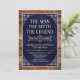 He IS The Man The Myth The LEGEND! His life has been an amazing adventure and it's time to celebrate his legacy and him. This rustic wood backed textured navy blue paper with white type and and white scrolled corners 75th Birthday invitation is perfect for inviting friends and family to join you in honouring and celebrating this incredible milestone birthday! To see your unique invitations click on "Personalise this Template" and type in your information. It's super easy!