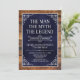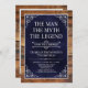 He IS The Man The Myth The LEGEND! His life has been an amazing adventure and it's time to celebrate his legacy and him. This rustic wood backed textured navy blue paper with white type and and white scrolled corners surprise 75th Birthday invitation is perfect for inviting friends and family to join you in honouring and celebrating this incredible milestone birthday! To see your unique invitations click on "Personalise this Template" and type in your information. It's super easy!