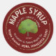 Maple syrup label with an early autumn maple tree on dark red background. Happy Sugaring!