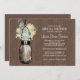 Perfect for a country style Bridal Shower or maybe you just love Mason Jars for any event! Mason Jar hanging on a hook filled with country wildflowers. A Rustic Brown background with a hanging Mason Jar and wildflowers in colours of mauve, soft romantic yellows and muted greens. If you have any questions on this design or want a colour change please email me paula@labellarue.com Also check for the Wedding Suite, INVITATION, RSVP, RECEPTION and GUEST SEATING Cards to match!