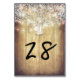 Rustic country barn wedding table number cards with baby's breath and mason jar