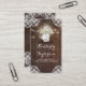 Rustic country business card with barn wood and mason jar, baby's breath, string lights, lace