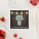 Rustic Mason Jar + Baby's Breath Wedding Napkins- use these for your wedding, bridal shower (just delete the groom's name), rehearsal dinner, and more. Napkins feature a barn wood background with a mason jar filled with baby's breath. String lights hang from the top. See the full matching wedding collection below.