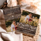 Express your thanks with this rustic mason jar wood wedding thank you card. The design features mason jar string lights on a rustic barn wood background. Personalise with two photos, your names and personal message.
