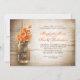Romantic rustic wood background and mason jar with orange flowers engagement party invitations. I suggest textured linen paper for this design.