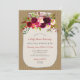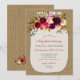 Rustic mason jar floral baby shower invitation featuring a burlap background, mason jar silhouette with burgundy floral accent. Super cute!