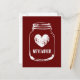 Rustic mason jar moving postcards for new address. Custom move text; We have moved! Add your new address on the back. Cute change of address cards for new home or business location. Old Vintage design with weathered faded heart icon. Handwritten typography. Maroon red or custom colour.