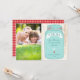 This rustic wedding invitation suite features a hand-drawn minty blue mason jar on a tree bark background. Hand-lettered type, the gingham pattern at the back and a tag attached with red & white bakers twine makes this a perfect choice for country theme weddings. Colours can be customised to suit your wedding's motif, just shoot me a message.