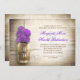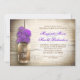 beautiful rustic wood background and mason jar with purple flowers rehearsal dinner invitations. I suggest linen or felt paper for this design.