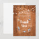 Rustic mason jar string lights thank you card, featuring string lights above an artsy mason jar filled with your thank you message and scattered pretty delicate flowers on a rustic textured background. A perfect way to say thank you! Designed by Thisisnotme©