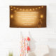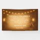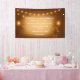 Celebrate your special day with this rustic wedding banner featuring glowing mason jars, hanging string lights, and a soft glowing centre for your custom text. Perfect for barn weddings, outdoor receptions, or rustic country celebrations, this banner design combines warmth and elegance. Personalise with the couple’s names, wedding date, and event details to create a memorable backdrop for your ceremony or reception.