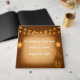 Rustic wedding guest book featuring a wood background with mason jar and string light accents. Personalise with your names and wedding date for a meaningful keepsake. Includes lined pages for guests to leave signatures, messages, and advice. Perfect for barn, farmhouse, country, or rustic-style weddings.