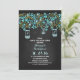 Beautiful and simple, modern and creative - chalkboard bridal shower invitation with various turquoise blue flowers, wildflowers, leaves and whimsical mason jars. Perfect rustic yet vintage bridal shower invitation for summer, fall, spring or winter wedding. For bridal shower decorated with string lights and mason jars. Please contact me if you need help with customisation, need more products or have a custom colour request. -------If you push CUSTOMIZE IT button you will be able to change the font style, colour, size, move it etc. it will give you more options!