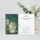 Celebrate a unique summer wedding with this wedding RSVP response card featuring two mason jars placed outdoors in the tall grass of a meadow to catch fireflies underneath a starry night sky. The image on the reply card is a photo illustration that captures the points of light created by the fireflies to illuminate the scene as well as the ladybugs and dragonflies that share the meadow. Your own response text prints to the right while the scene is repeated on the reverse to highlight your name(s) or any message you like. Available with matching products.