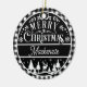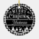 Rustic Merry Christmas Black & White Plaid Custom Ceramic Tree Decoration