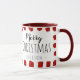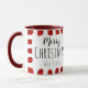 Say "Merry Christmas" with this cute and festive custom mug featuring the greeting "Merry Christmas" in black script and hand written fonts and accented with a rustic painted red striped border on a white background. Personalise the typography with a name and you have the option to replace "Merry Christmas" with words of your own choosing. Designed by © Tim Coffey.