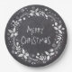 Rustic Merry Christmas Floral Wreath Chalkboard Paper Plate